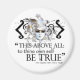 "Ceci avant tout : pour que vous soyez vrai" - William Shakespeare (Hamlet). Un design élégant avec cette célèbre citation utilisant un masque carnivale/théâtre avec des fioritures pour la personne qui s'inspire des classiques.