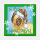 Célébrez la saison des Fêtes avec un Briard heureux portant un casquette plein entouré de flocons de neige et les mots, Happy Howlidays! Idée cadeau de vacances idéal pour la famille et les amis amoureux de Briard.
