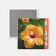 L'aimant Hawaii présente une jolie fleur tropicale - un hibiscus orange et corail dans le soleil chaud du matin hawaïen avec l'accueil traditionnel de l'aloha.