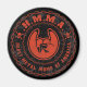 Logo de l'union des mamans en métal lourd d'Amérique; rouge/noir, texy avec salut à la main de roche, crânes et os croisés, dans une bordure de chaîne. T-shirts, nouveautés, cadeaux.