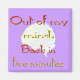 Aimant Hors de mon esprit, retour dans cinq minutes
