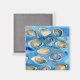 Aimant Huîtres Clams Coquillages Aquarelle Bleu