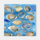 Cet aimant océanique présente de l'aquarelle d'huîtres et de palourdes contre un arrière - plan bleu abstrait ; un motif de créatures de mer bivalves pour les amateurs de nautisme, de côtes et de coquillages !