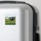 Vache noire et blanche debout dans le pâturage, avec un peu d'humour disant : "Je suis remarquable dans mon champ !"