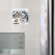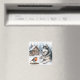 Un aimant délicieux avec un adorable husky et son ami le robin dans une scène enneigée. Éclairez votre réfrigérateur avec ce chien coquin assis dans la neige avec son ami le robin. Le husky assis dans la neige devant un cabine en rondins dans son endroit préféré - la neige !