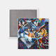 A vibrant colorful ai illustration of a wolf and an owl in a mosaic stained glass effect. A nice magnet to hang up your notes and pictures for those who love wildlife.