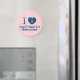 Personnellement je choisirai l’aimant plus petit, car je le trouve plus approprié. Celui ca a la grandeur d’un macaron. Très belle qualité d’impression