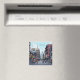 Illustration du centre-ville de Calcutta, architecture indienne, motos et voitures. Un aimant avec une illustration de la rue animée du centre-ville avec des immeubles, des restaurants, des magasins et des gens sur leurs motos.