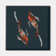 Dessin abstrait de carpe koï nageant à l'aquarelle. Couleurs rouge et bleu marine.