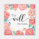 La typographie de calligraphie est conçue en lettres noires élégantes avec des glyphes et des alternatives fantaisistes, et le swash ornemental dit "Thy Will Be Done". L'écriture est de Matthieu 6:10. Le design est entouré de beaux roses d'aquarelle rose.