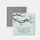 Les magnets mariages à thème printemps ou nature présentent deux silhouettes d'oiseaux bruns perchées sur un membre d'arbre avec pêche ou feuilles roses sur un magnifique arrière - plan bleu aqua. Visitez notre magasin pour trouver des produits correspondants. Coincé