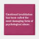 L'invalidation émotionnelle est considérée comme la forme la plus dommageable d'abus psychologique. L'invalidation émotionnelle est la conscience ou la tentative inconsciente de communiquer à quelqu'un que ses émotions ne sont pas acceptables, pas importantes, irrationnelles, ou qu'elles doivent être cachées ou dissimulées.