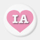 Cet aimant est doté d'un coeur rose vif contenant les lettres coques supérieures IA, en gras, blanches, l'abréviation officielle de Iowa, l'état hawk-eye.
