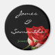 Aimant rouge et givré élégant de mariage de rose blanc personnalisé avec vos noms et date.