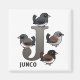 Quatre juncos différents perchent sur une lettre en ardoise J. Vous pouvez customiser totalement ce cadeau ! Déplacez le design, changez la couleur ou le style arrière - plan, ajoutez votre propre texte ou vos propres images — faites-le vous-même !