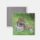 Aimant carré avec l'image d'un beau jaguar allongé dans l'herbe. Le jaguar est une espèce presque menacée et son nombre diminue.