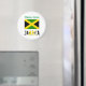 Aimant rond avec le drapeau jamaïcain vert, jaune et noir avec le mot JAMAICA ci-dessous, également dans les couleurs du drapeau. Ci-dessus a un endroit à personnaliser avec un nom, en lettres vertes, ou, créer un cadeau personnalisé en ajoutant le nom de quelqu'un d'autre. Parfait comme souvenir d'une réunion de famille, de voyages ou de club. Cool de stockage de l'étouffée, aussi.