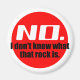 Cet aimant frigo est muni d'un logo rouge avec le texte "Non, je ne sais pas ce qu'est cette roche." Pour ceux qui reçoivent trop de demandes de nom de roches mystérieuses.