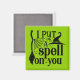 Ce design classique d'Halloween comporte l'expression éffrayante "Je mets un sort sur vous" dans une police audacieuse d'inspiration gothique. Les couleurs noir et blanc rehaussent l'atmosphère étrange, rendant le design parfait pour la saison d'Halloween. Le texte est accompagné d'éléments de sorcellerie iconiques, dont un casquette de sorcière pointu, un bâton de brosse, une toile d'araignée et une minuscule araignée, tous arrangés pour créer une composition de sorcière. Le détail subtil des points autour du texte ajoute une touche de charme magique.