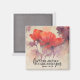 Magnifique aimant chrétien avec citation inspirante écriture représente un design d'art floral simple et élégant aquarelle avec deux fleurs rouges et un arrière - plan abstrait violet. Il présente une Bible Verse Jean encourageante 15:12, selon les paroles de Jésus : "Aimez-vous les uns les autres comme je vous ai aimés."