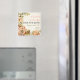 Joli tableau romantique vintage de mariage rose Save the Date aimant qui comprend un bouquet de fleurs roses anglaises en rose, pêche et corail avec feuilles verts.