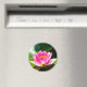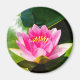 Cet aimant frigo présente une photo originale d'un beau lys d'eau rose dans un petit étang en Italie.