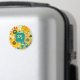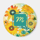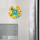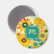 Aimant de fleurs d'art populaire jaune et turquoise. Ajoutez des initiales dans la zone personnalisée.