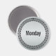 Graphique en cercle gris et noir pour les rappels d'organisation quotidienne pour la maison ou le bureau. Cet aimant organisateur est pour lundi.