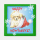 Célébrez la saison des Fêtes avec un mignon chiot de la poupée de jouet dans un chapeau de Père Noël et écharpe au milieu des flocons de neige et les mots, Happy Howlidays! Idée cadeau de vacances idéal pour famille et amis amoureux des canicules.
