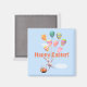 Aimant avec ma conception d'un petit lapin mignon flottant dans le ciel, tenant sur un tas de ballons et portant une corbeille d'oeufs de Pâques. Le texte dit "Bonne Pâques !"