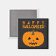 Un aimant Halloween avec un citrouille et un texte 'Happy Halloween' en noir. Customisez la couleur noire de l'arrière - plan parmi d'autres options.