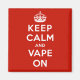 A vaper's funny rendition of the famous "Keep calm and carry on" World War II défi. The slogan is Keep Calm and Vape On and the color is red. Vape on and be inspecred, ecig lovers !