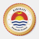 The national flag of Kiribati is infused into a circular shape. Around the outside of the flag, are the country names in English and in Gilbertese. The two versions are separated with faux gold decorative stars, and are printed on a white circular background. The rest of the design is coloured in a faux gold shade. As with all my designs, this item is also customizable, so you may add or change the text to something that is suitable for you.