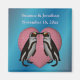 A pair of cute kissing penguins on a pink heart against an electric blue background save the date announcement or wedding favor refrigerator magnet. Fill in your information in the template. Make more changes to text and font size, style, and color. This design is available on many products in my gallery. Please visit Smilin' Eyes Treasures to see more bridal and wedding invitations, card, favors, and gifts.