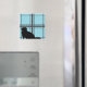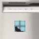 Cet aimant s'inspire du passé préféré de Nicky : regarder par la fenêtre. L'arrière - plan bleu pâle représente le ciel matinal, tandis que les lignes gris foncé représentent des fenêtres. Le petit chien lui-même fait également son apparition.