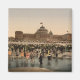 Impression photomécanique vintage du kursaal orcure house (spa de santé) et de la plage de Scheveningen dans le Pays-Bas, qui a été prise vers la fin du 19ème siècle. La photo montre des gens s'amusant dans l'eau avec le kursaal dans l'arrière - plan. Photo de LOC (LC-DIG-ppmsc-05855).