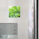 Cet aimant vous encourage à "Live Green". Un gros plan de feuilles d'été verdoyants après une pluie. ~ Partie de la collection verte. ~