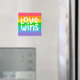 Cette oeuvre présente un arc-en-ciel coloré avec les mots Love Wins.