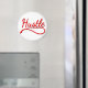 Le mot "hustle" en rouge avec des ombres tombantes en noir. Design original.
