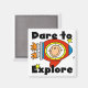 Un astronaute à silex dans son vaisseau spatial explose sur des terres inconnues. Le texte dit "Osez explorer" sur des T-shirts, des tasses, des cartes, des autocollants, des sacs fourre-tout, des magnets et d'autres accessoires astronautes parfaits pour quiconque aime les figurines et l'espace !