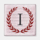 Une délicate couronne de laurier est posée sur une douce feuille vintage rose arrière - plan dans le style romantique classique. Ce design est personnalisé avec le monogramme "I" dans un ton gris fusain.