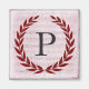 Une délicate couronne de laurier est posée sur une douce feuille vintage rose arrière - plan dans le style romantique classique. Ce design est personnalisé avec le monogramme "P" dans un ton gris fusain.