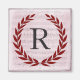 Une délicate couronne de laurier est posée sur une douce feuille vintage rose arrière - plan dans le style romantique classique. Ce design est personnalisé avec le monogramme "R" dans un ton gris fusain.