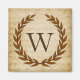 Une délicate couronne de laurier est posée sur un arrière - plan vintage de partitions de style romain classique. Ce design est personnalisé avec le monogramme "W" dans une tonalité de sienne riche.