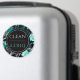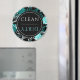 Lave-vaisselle propre/sale aimant présente un design turquoise et noir simple avec un médaillon stylisé et une typographie moderne sur un arrière - plan floral noir, blanc et turquoise. Un simple aimant rond propre/sale conçu dans un jeu de couleurs moderne, adapté à la décoration d'une maison moderne aujourd'hui, ou un petit cadeau de cuisine moderne réfléchi pour lui, elle ou eux.