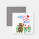 Un aimant avec mon oeuvre d'un castor devant les fleurs et tenant une pancarte qui dit "J'aime le territoire du Yukon".