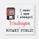 Je Suis Venu, J'Ai Vu, Je Me Suis Étonné. Faites de la publicité à vos affaires publiques notaires de Washington avec une touche d'humour. Le bouton de la fierté d'État fait un don réfléchi à tout notaire professionnel ou signataire d'un prêt qui fournit des services juridiques au public. Ce timbre de notaire rouge est présenté sur un arrière - plan de papier de graphique bleu.