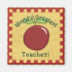 Un aimant carré avec un arrière - plan rouge et des pois jaunes. Au centre se trouve la pomme rouge traditionnelle et le texte "Meilleur Enseignant du Monde". Cet aimant ferait une agréable appréciation de professeur merci cadeau.
