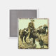 Old Western Cowboy Riding son cheval s'arrêtant pour l'eau sur le sentier. Aimant de cuisine. Petits cadeaux de vacances, faveurs de fête et farces de bas.