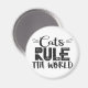 Amusant et adorable aimant frigo moderne avec les mots "Les chats gouvernent le monde", décoré de whiskies blancs, rayures de chat, une petite souris, et une petite patte.